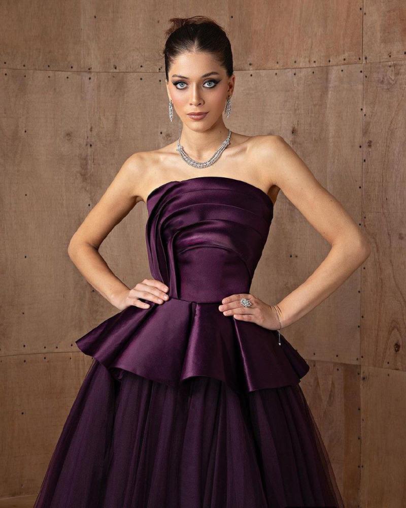 الوصف/ فستان سهره راقي يأتيكي باللون العودي بتصميم مميز ليعطيكي منظرا جميلا