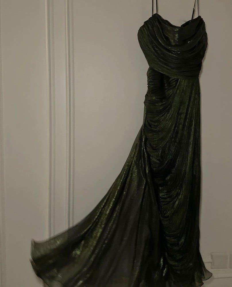 الوصف/ فستان سهره راقي يأتيكي باللون الزيتي وتصميم راقي ليعطيكي منظرا جميلا