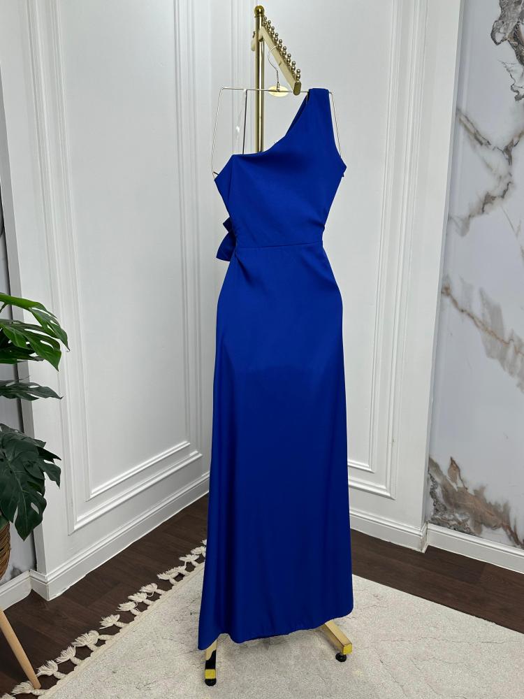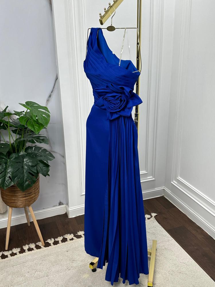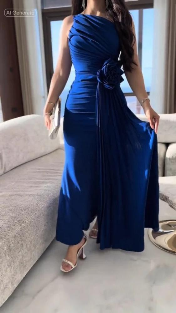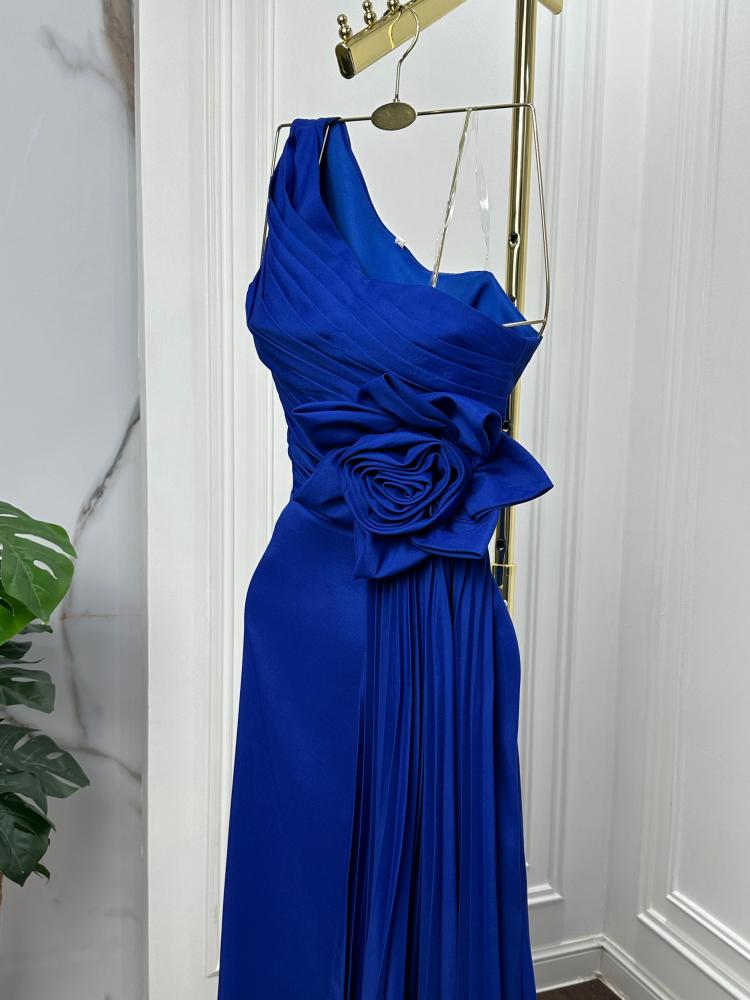 الفستان النيلي المصنوع من خامة التفته هو خيار أنيق وفاخر، يتميز بلون النيلي العميق الذي يضيف لمسة من الرقي. الخامة ذات النسيج الخفيف والمنساب تجعل الفستان ينساب برشاقة على الجسم، مع الحفاظ على تفاصيل دقيقة تضفي عليه جمالًا فريدًا. يتميز الفستان بوجود وردة أنثوية رائعة على جانب الخصر، ما يضيف لمسة من الرومانسية والأنوثة. الوردة تأتي بتفاصيل دقيقة مصنوعة من نفس خامة الفستان ليبرز جمالها أكثر. التصميم العام يجمع بين الأناقة والنعومة، مما يجعله مثاليًا للمناسبات الخاصة.