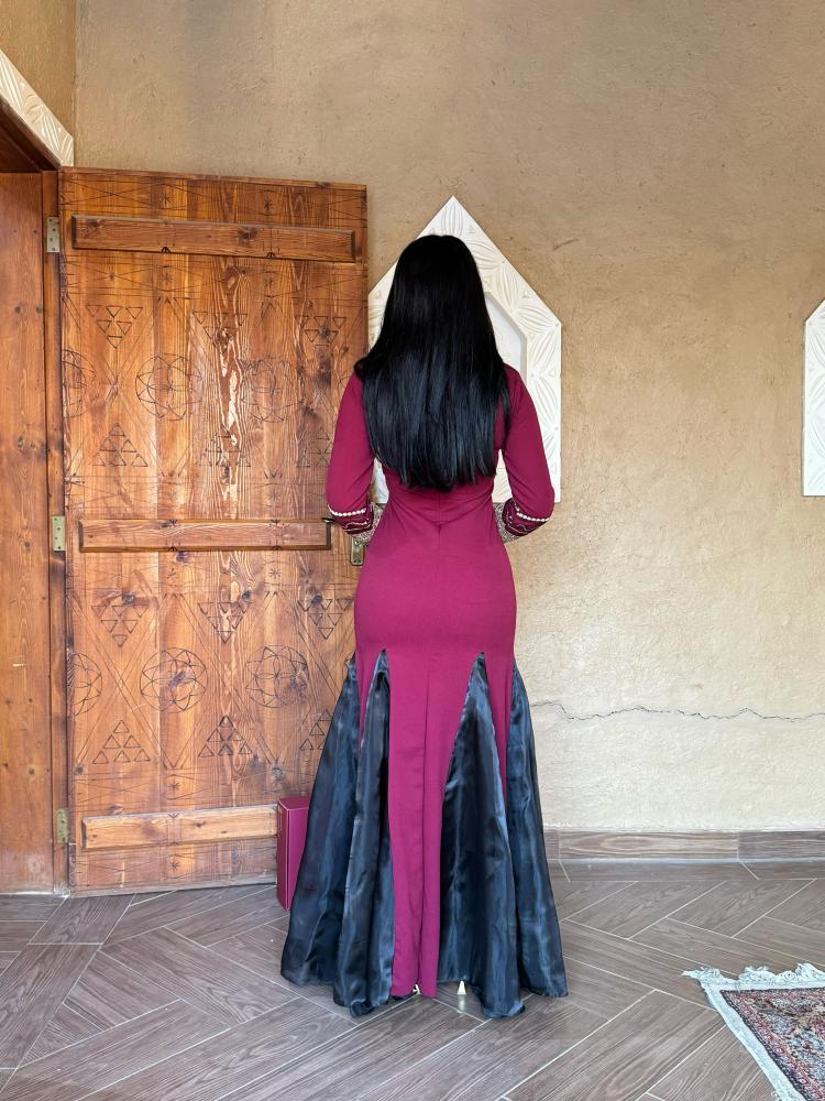 • اللون: متوفر بدرجة العنابي الانيقة والترندي والتي تناسب الأجواء الاحتفالية.
