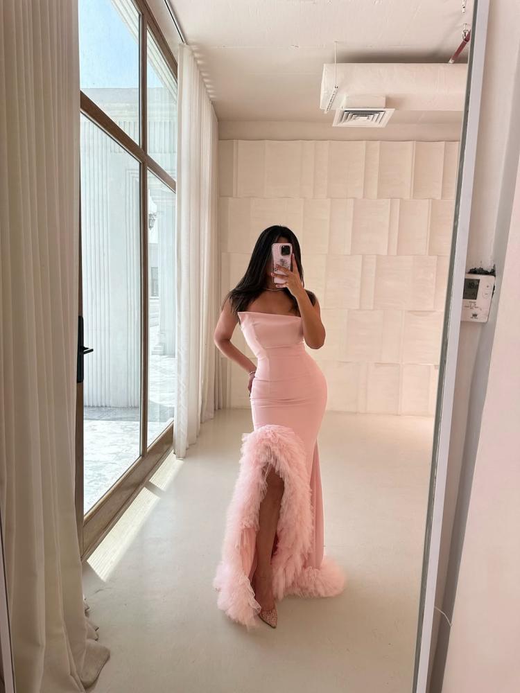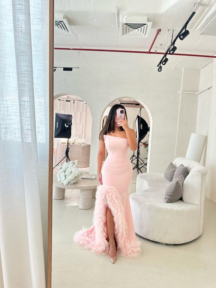 • وصف الفستان:تميّزي بإطلالة ساحرة مع هذا الفستان الوردي الفاخر المصمم من خامة الباربي الفخمة. يتميز بقصة ضيقة تبرز جمال القوام، وشق أمامي جريء مزيّن بالريش الناعم الذي يضفي لمسة درامية أنثوية. مثالي للمناسبات الفاخرة والإطلالات الراقية التي لا تُنسى. خصائص الفستان:الخامة: باربي ناعمة بجودة عالية
