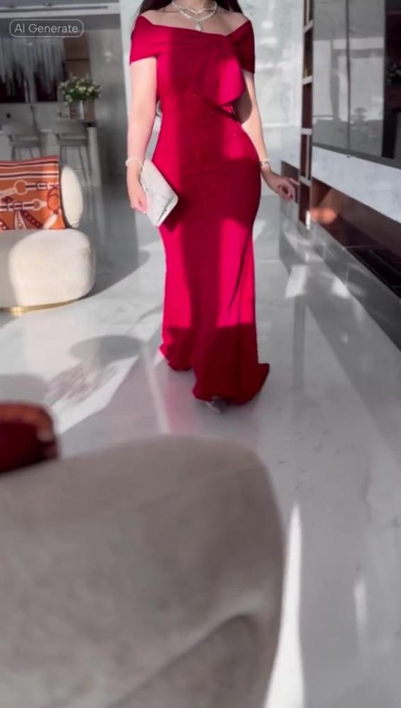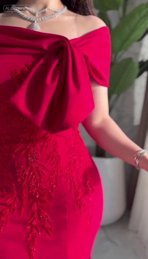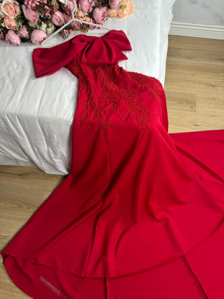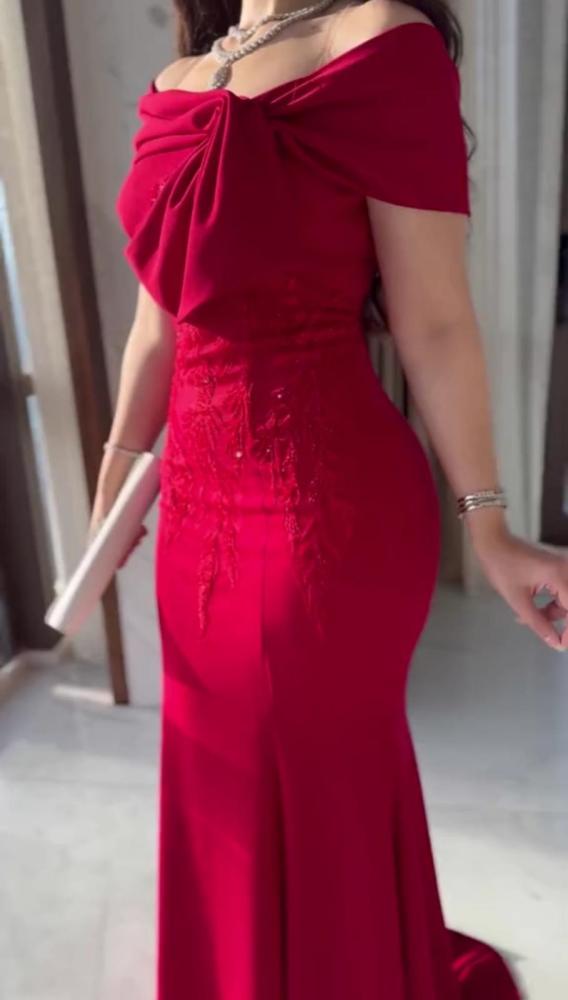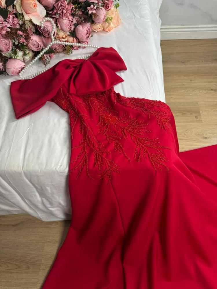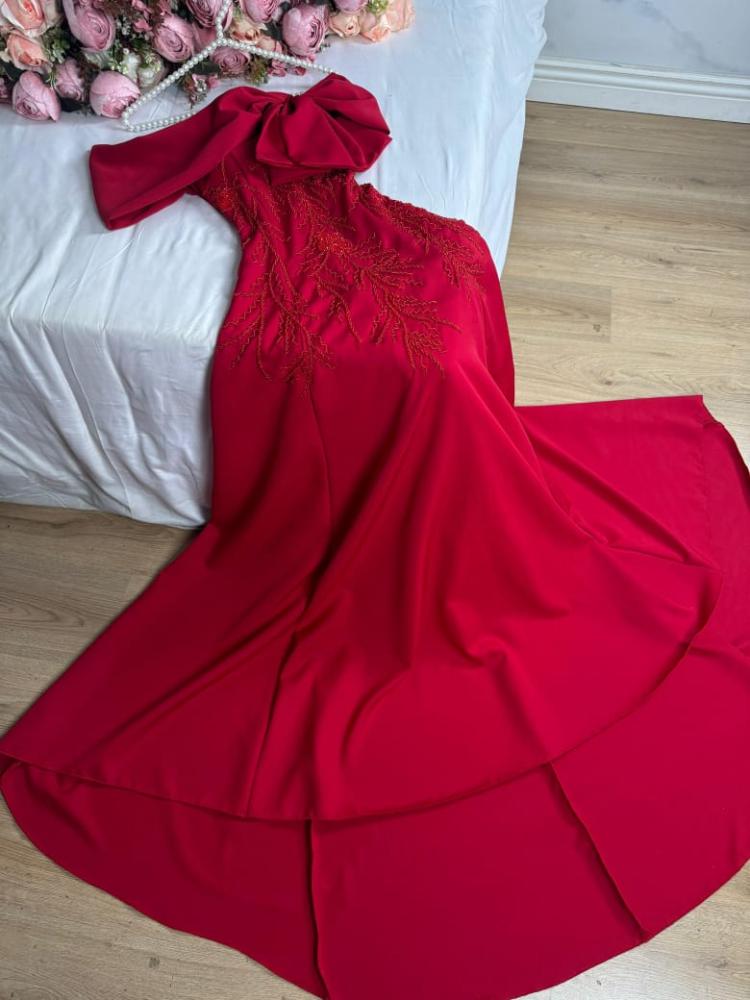 الوصف/ فستان سهره راقي يأتيكي باللون أحمر بتصميم راقي ليعطيكي منظرا جميلا