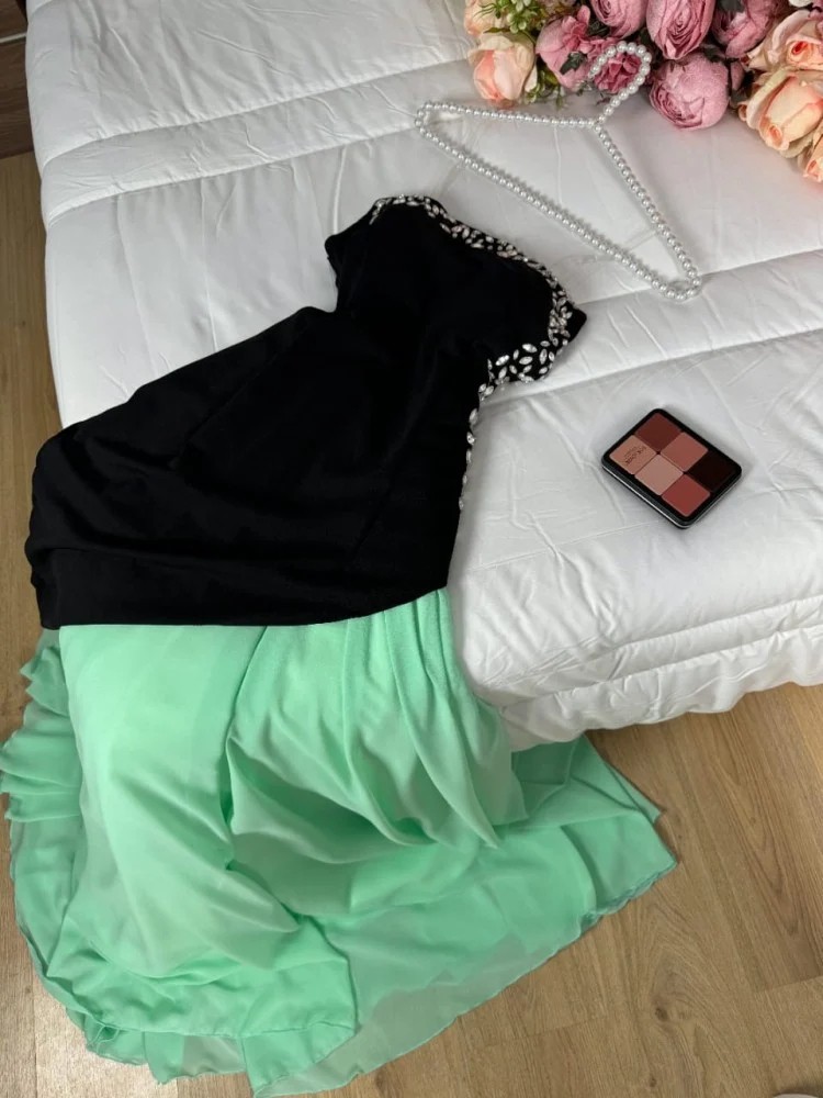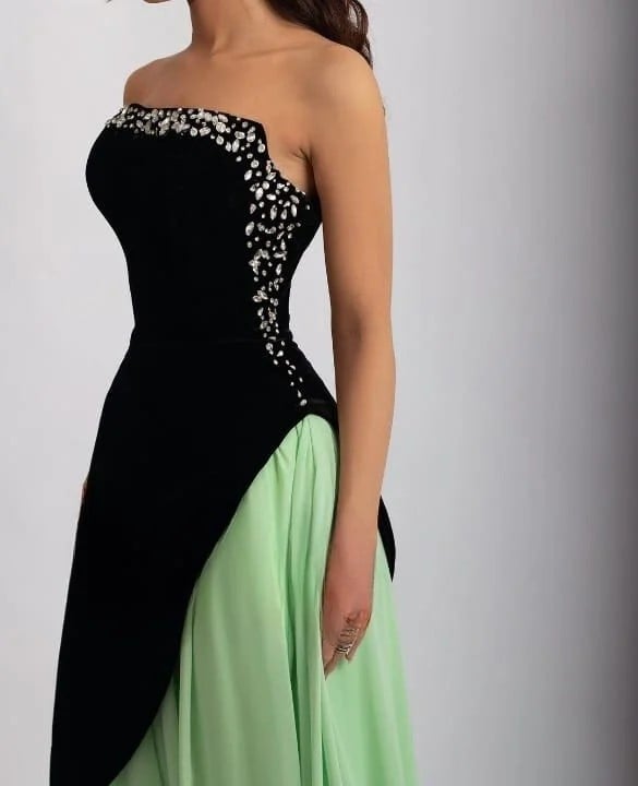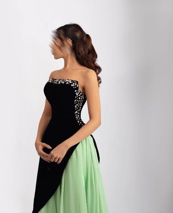 فستان سهرة كريب على شيفون تطريز يدوي كرستال