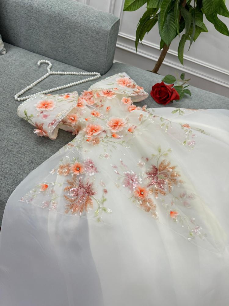 الوصف/ فستان سهره راقي يأتيكي باللون السكري مع تطريز راقي علي الصدر ليعطيكي منظرا جميلا