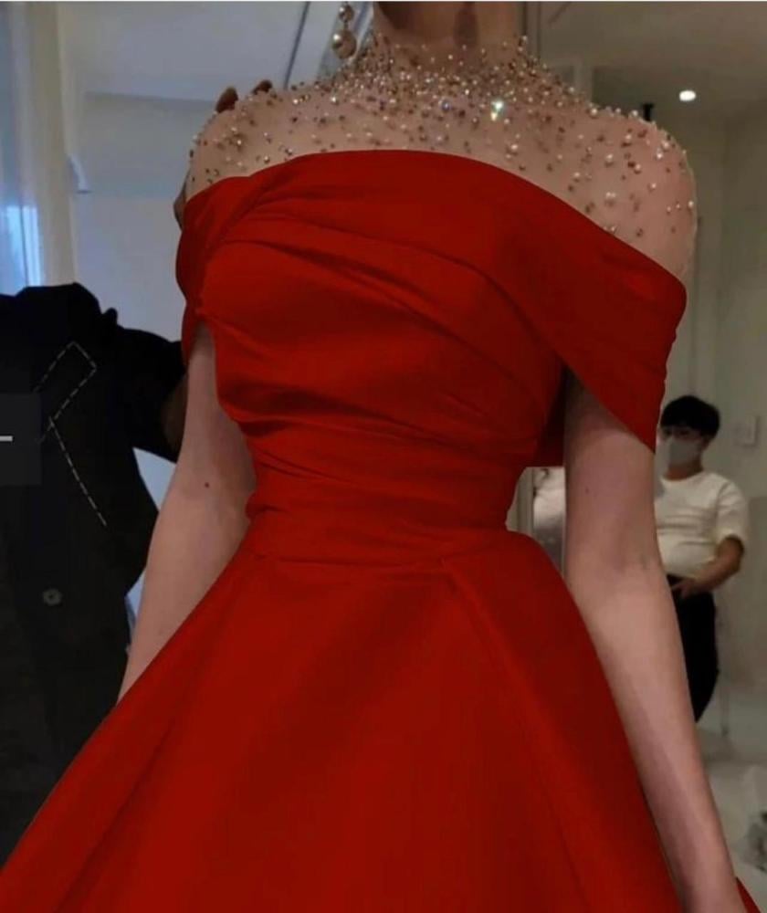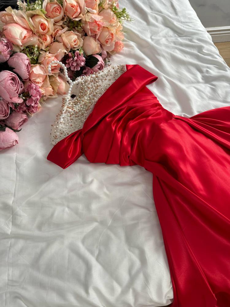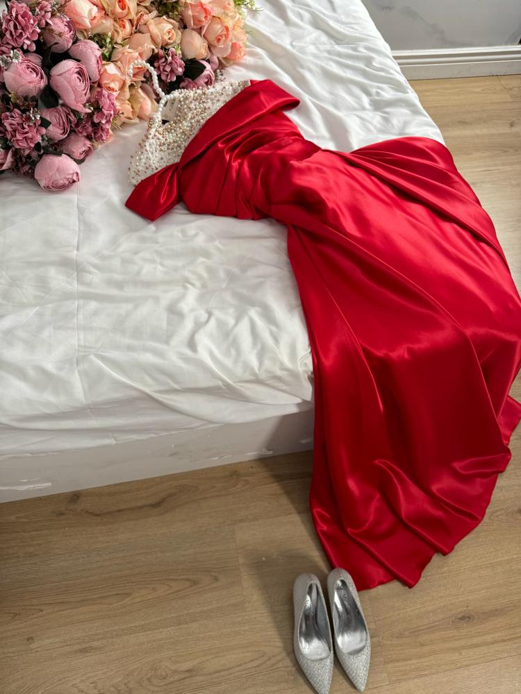 الوصف/ فستان سهره راقي يأتيكي باللون الاحمر ليعطيكي منظرا جميلا
