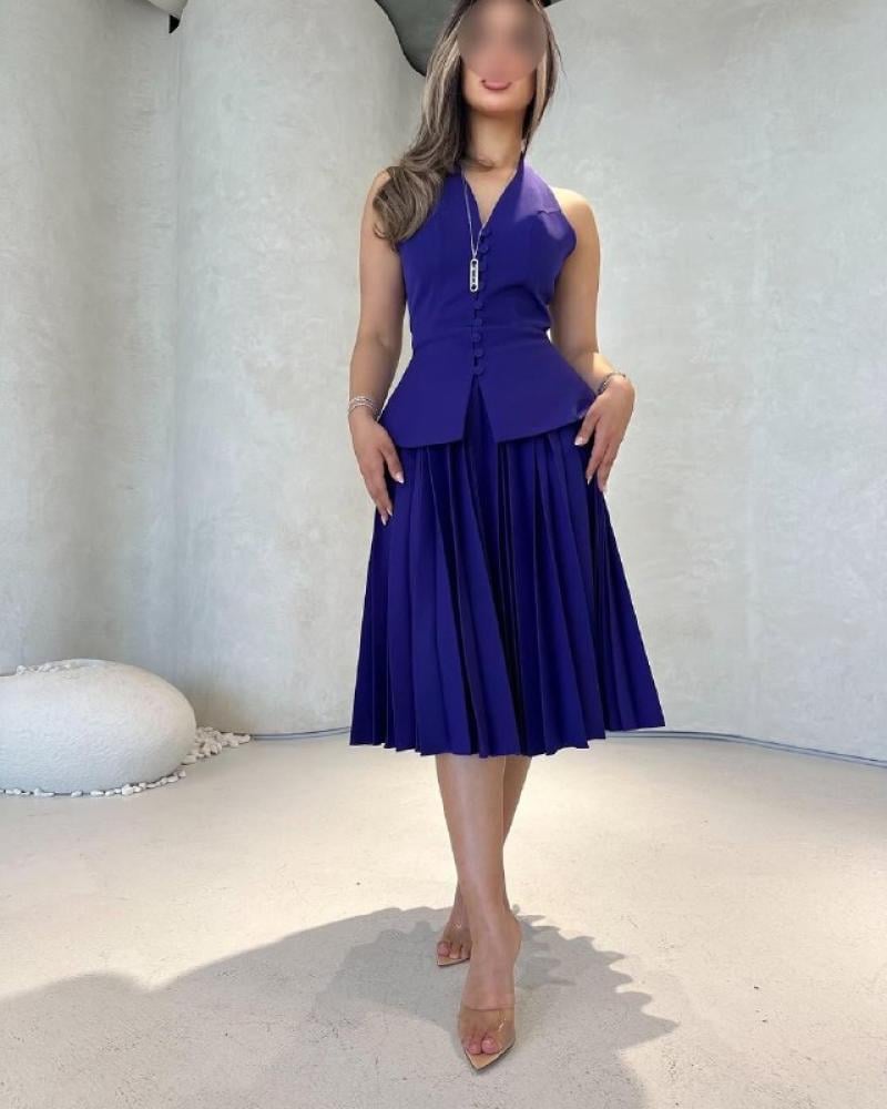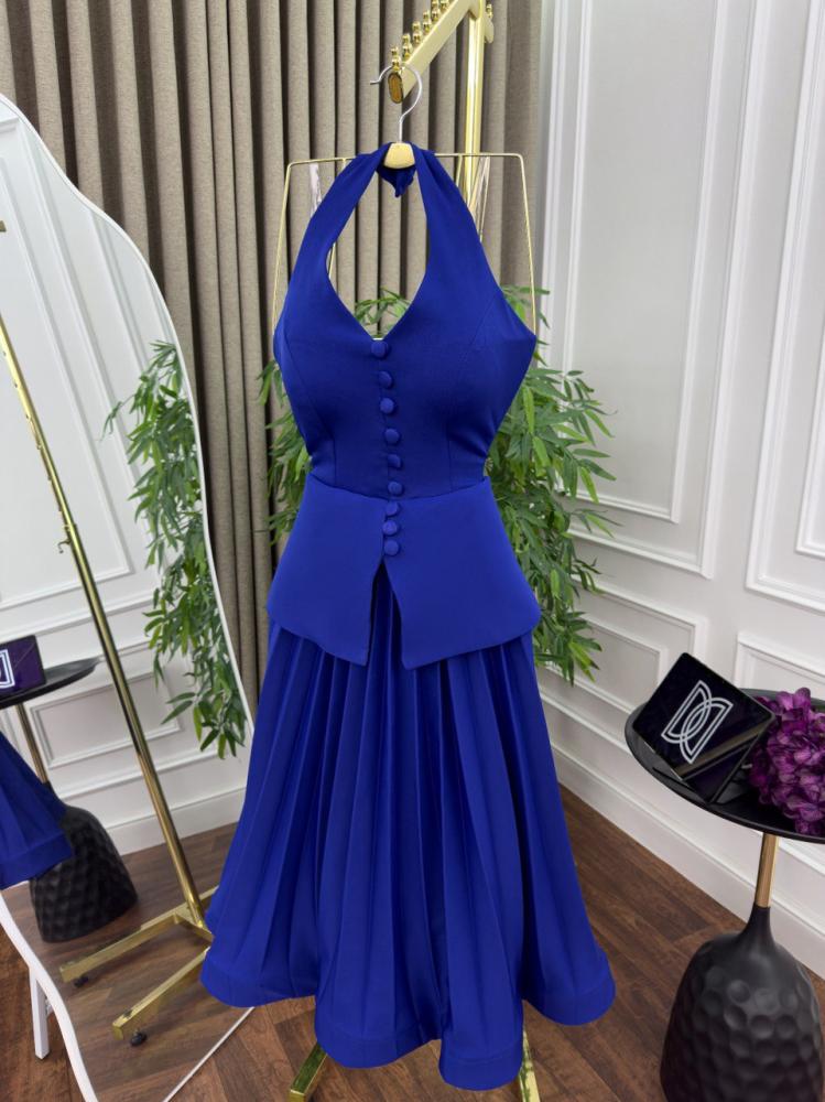 تألقي بإطلالة أنيقة وساحرة في العيد مع هذا الفستان الراقي المصمم ليمنحك حضورًا مميزًا. مصنوع من خامة باربي الفاخرة التي تتميز بجودتها العالية وانسيابها الجميل على الجسم، مما يجعله خيارًا مثاليًا للمناسبات الخاصة. يأتي الفستان بلون نيلي جذاب يضفي لمسة من الفخامة والرقي، مع تصميم مكون من توب بحمالات عريضة وأزرار أمامية تعطيه طابعًا كلاسيكيًا أنيقًا. تتميز التنورة بقصة بليسيه واسعة تمنحك حرية الحركة وتضيف لمسة أنثوية راقية. هذا الفستان هو الخيار الأمثل لتتألقي في العيد بأناقة لا مثيل لها.