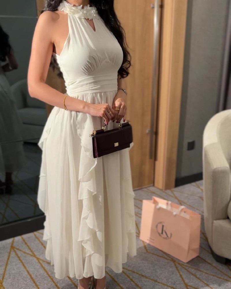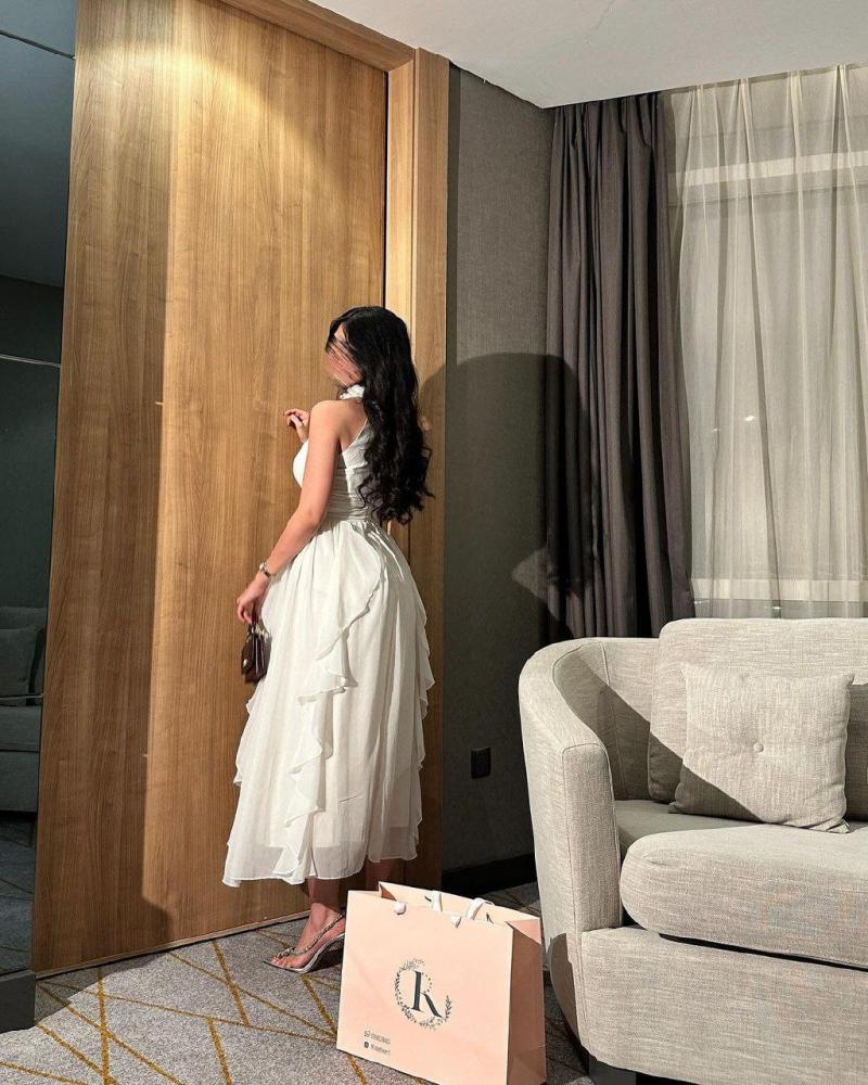 الوصف/ فستان ميد راقي يأتيكي باللون الابيض ليعطيكي منظرا جميلا