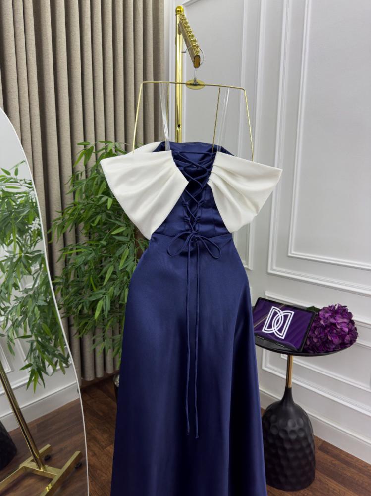 تألقي بإطلالة ملكية جذابة مع هذا الفستان الراقي المصمم بأسلوب يجمع بين الفخامة والأناقة. يتميز الفستان بلونه الكحلي العميق الذي يعكس الفخامة والرقي، مع خامة التفتة اللامعة التي تضيف لمسة من التألق والنعومة لحركتك.
