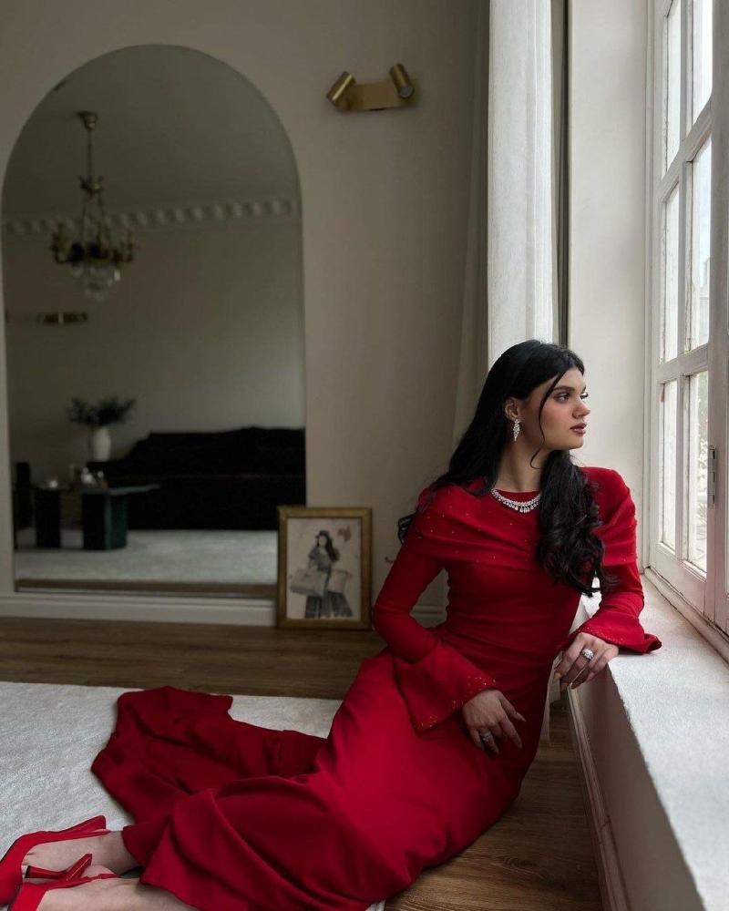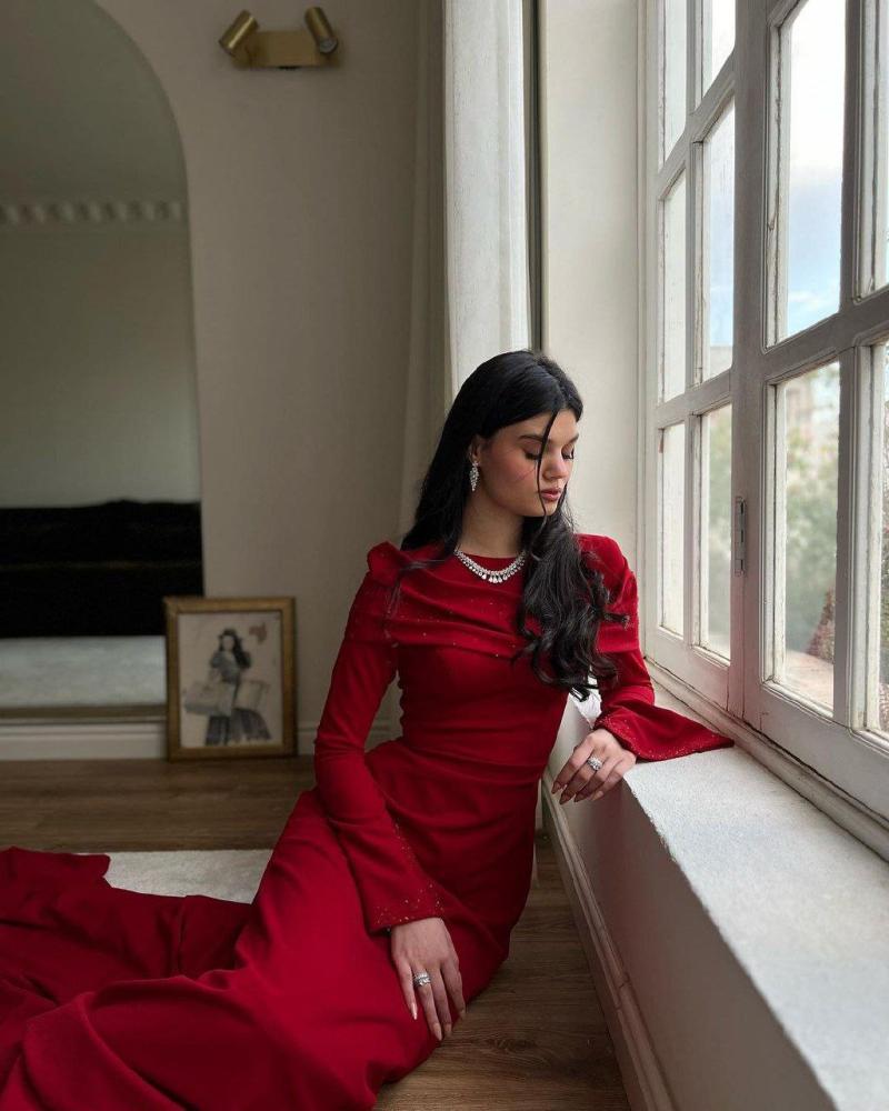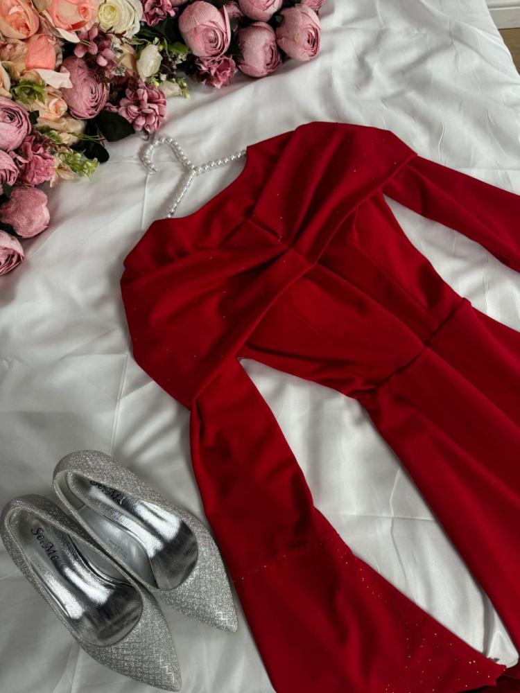 الوصف/ فستان سهره راقي يأتيكي باللون الاحمر ليعطيكي منظرا جميلا