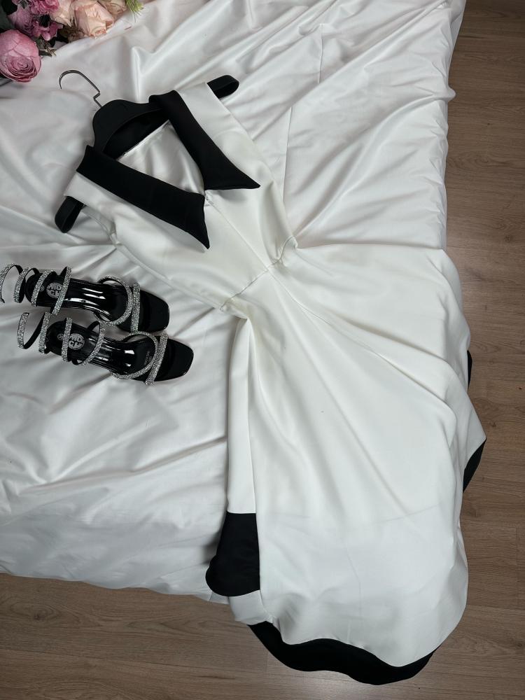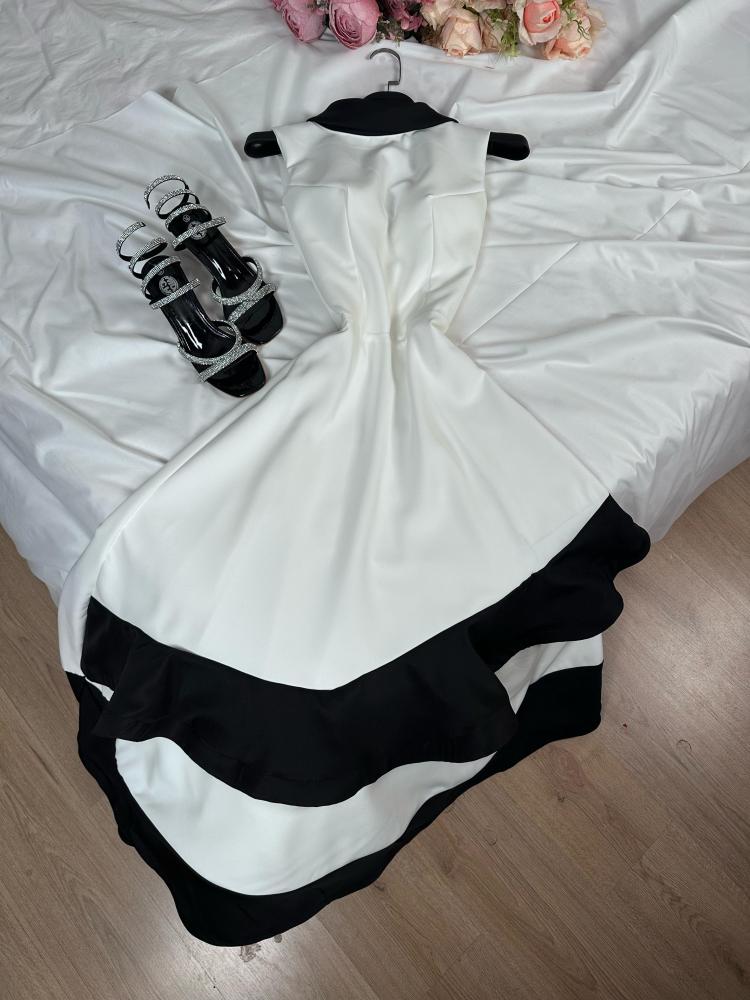 فستان فاخر بتصميم أنيق يجمع بين الرقي والعصرية مصنوع من خامة الباربي الفاخرة التي تمنحك إطلالة ساحرة وانسيابية مثالية. يتميز بقصته الكلاسيكية الراقية بلون أبيض ناعم مع لمسات راقية من الأسود في الأطراف، ليضفي لمسة من التميز والفخامة على إطلالتك. مثالي لسهرات العيد والمناسبات الخاصة، تألقي به بكل ثقة وجاذبية! خصائص الفستان: