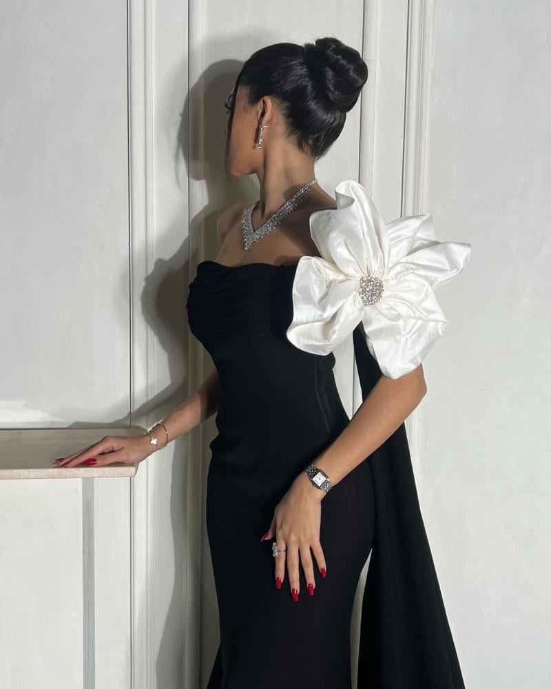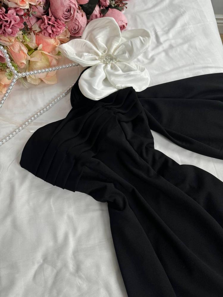 الوصف/ فستان سهره راقي يأتيكي باللون الاسود وورده علي الكتف بشكل راقي ليعطيكي منظرا جميلا