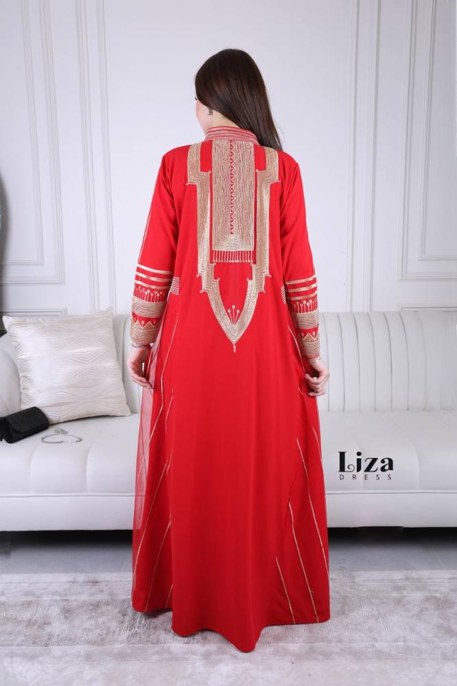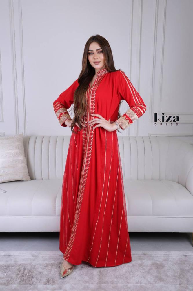 جلابية أنيقة بتصميم عصري ولمسة من الفخامة، مصنوعة من خامة كريب استرتش التي تمنحك راحة وأناقة طوال اليوم. يتميز التصميم بتل ناعم مطرز يضفي على الجلابية لمسة فاخرة ومظهر جذاب يناسب جميع المناسبات. اللون الأحمر الجذاب مع التطريز الذهبي يجعلها قطعة مثالية للتألق في المناسبات الخاصة. احتفلي بيوم التأسيس مع جلابيتنا الراقية
