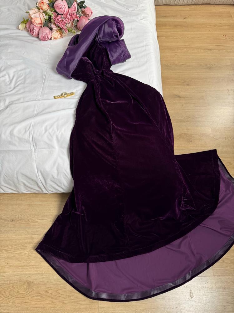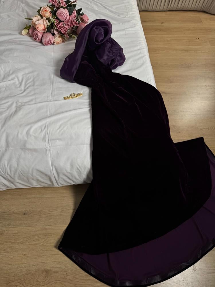 فستان سهرة أنيق بلون ليلكي من المخمل الأمريكي